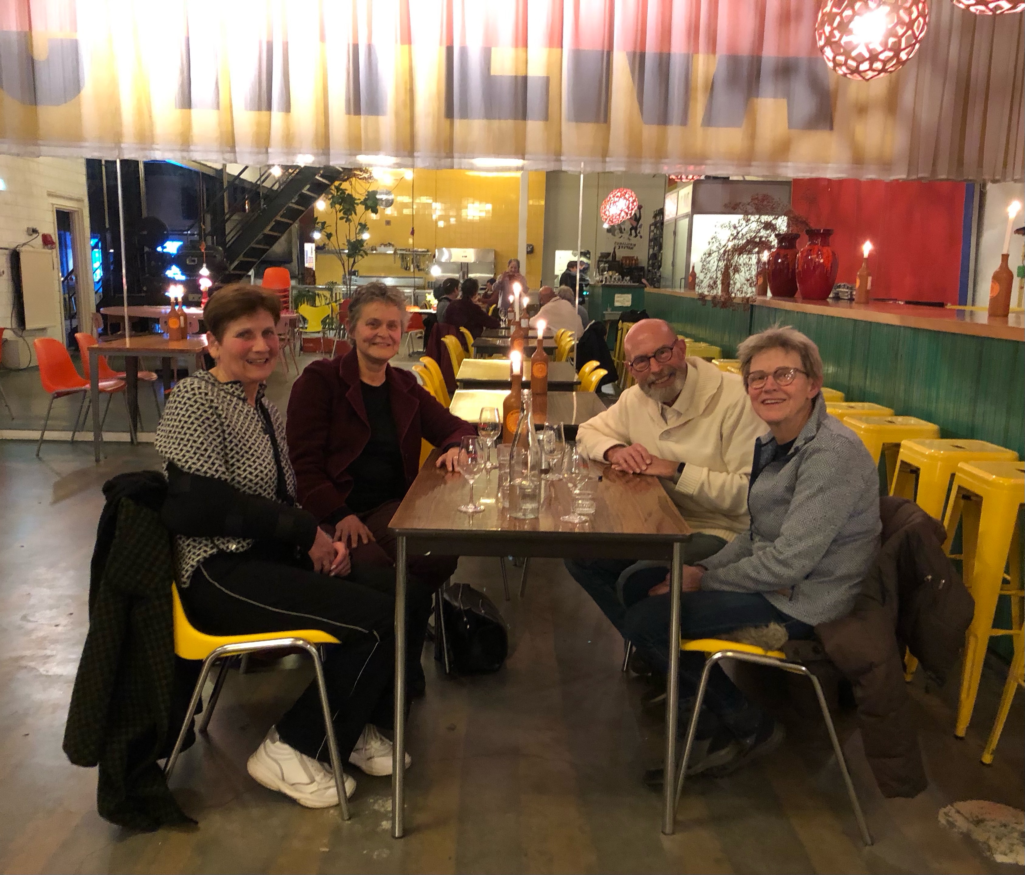 Tegen zessen liep het terras van Bunk op vrijdag 4 april al aardig vol met leden van Roze Stadsdorp; buurtgroep Noord was vertegenwoordigd met 12 deelnemers. Het werd buiten fris, dus we togen naar binnen, waar een lange tafel voor ons was gedekt in een afgezonderde nis. ▶︎